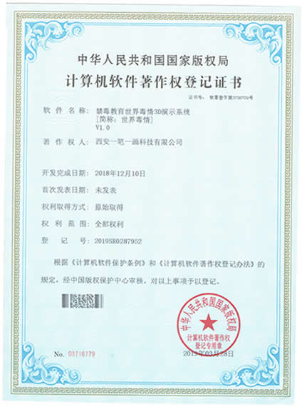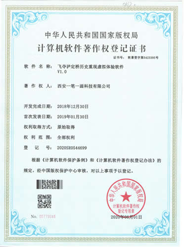 西安一筆一畫(huà)科技有限公司擁有《3C管理體系認(rèn)證》|《3A信用等級(jí)》|《展館雙甲資質(zhì)》《招投標(biāo)證件》|《展覽業(yè)10大影響力品牌》|《環(huán)藝雙甲資質(zhì)》|《禁毒教育拒毒心理測(cè)試系統(tǒng)軟著》|《飛奪瀘定橋歷史重現(xiàn)虛擬體驗(yàn)軟件軟著》|《禁毒教育世界毒情3D演示系統(tǒng)軟著》等等,是您可以信賴的展廳教育基地設(shè)計(jì)施工企業(yè)!